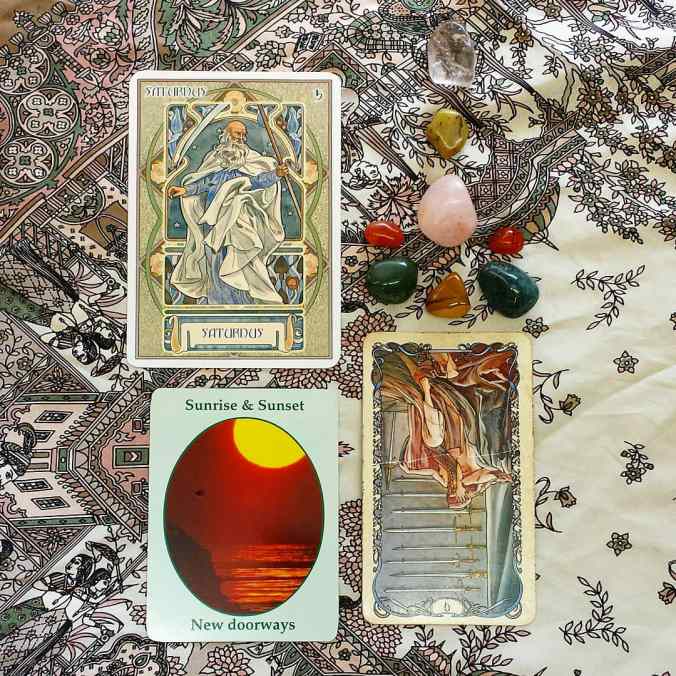 Saturday begins with another opposition (6:26 am ADT), this time between Mercury and Pluto retrograde, the planet represented by the Judgment card. I’m really seeing this as bringing in the theme of the “cart” from the beginning of the week: at the end of the week you’ve accepted what’s tipped, what has been dumped out for quite an obvious reason, and you’re really ready to start thinking towards a workable solution. You’re ready to start juggling with what’s left, and to truly make some magic!