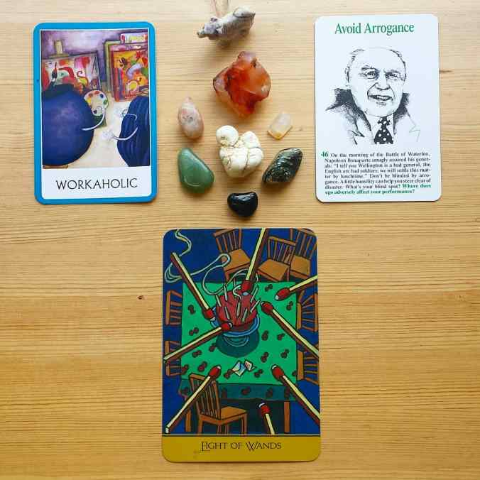 Higher Self Cards: Workaholic + 46. Avoid Arrogance + 8 of Wands